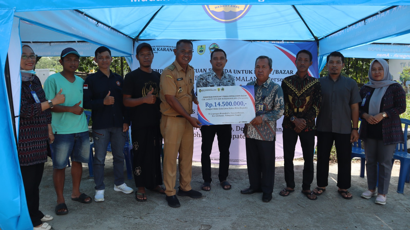 Dukung Kegiatan Masyarakat, PT BPR BKK Karangmalang (Perseroda) Salurkan Bantuan CSR kepada Pemuda Karang Taruna di Desa Jambangan Kec Sidoharjo Berupa 5 ( lima ) Tenda Bazar/Event