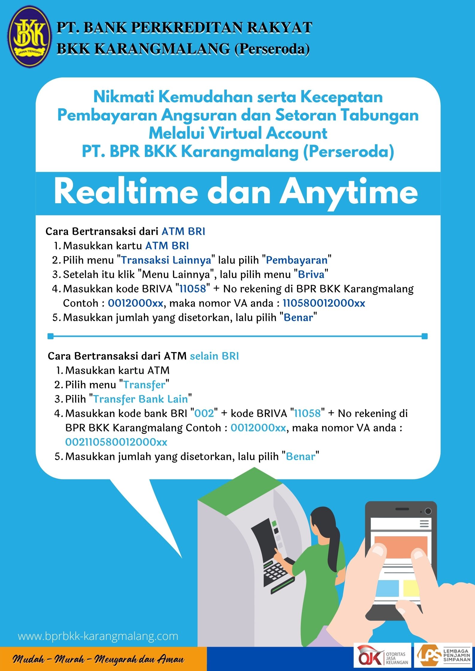 Tata Cara Transfer Virtual Account BRI - KARANGMALANG Melalui Mobile Banking BRI Masuk ke aplikasi Mobile Banking BRI. Pilih menu Info. Pilih menu BRIVA. Masukkan nomor virtual account 11058xxxxxxxxx (diikuti 9 digit